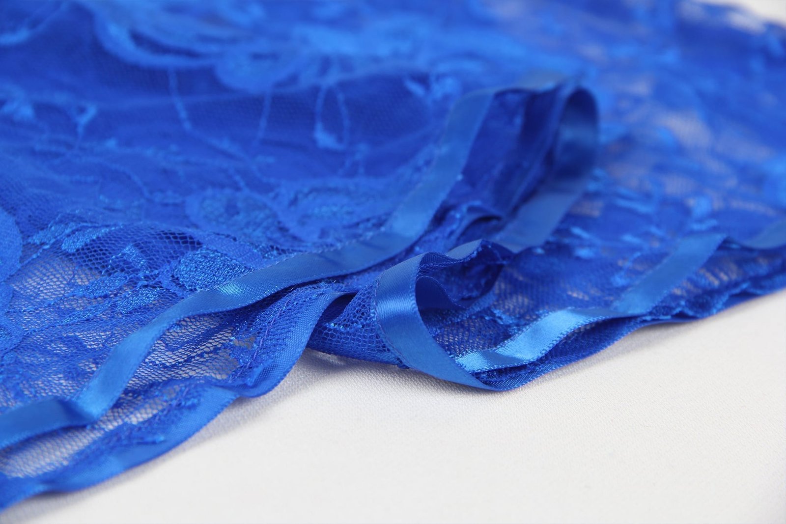 The soft lace fabric, adorned with ruffles and a charming satin bow, creates a visual masterpiece that embodies femininity and confidence. Available in classic black, passionate red, and serene blue, this set includes a matching G-string for a complete look. Whether you’re embracing a quiet night in or celebrating a special moment, this chemise is designed to empower you with comfort and allure.