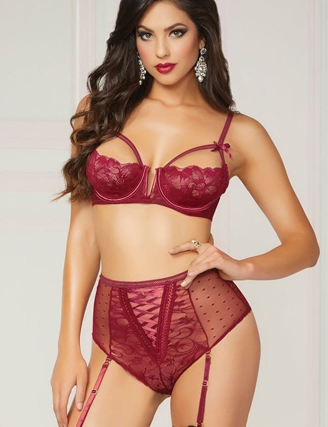 Lace Open Bust Bra and Garter Panty Set by My Secret Drawer®