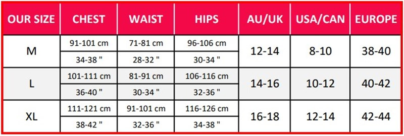 Please refer to our size chart to find your perfect fit. If unsure, we suggest you choose one size up: