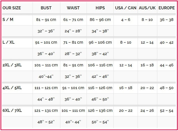 Please refer to our size chart to find your perfect fit. If unsure, we suggest you choose one size up: