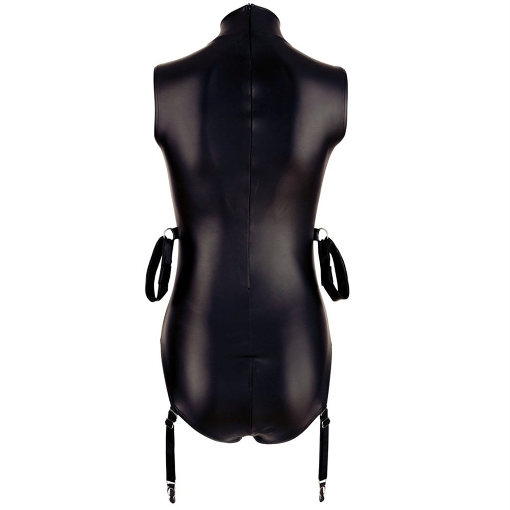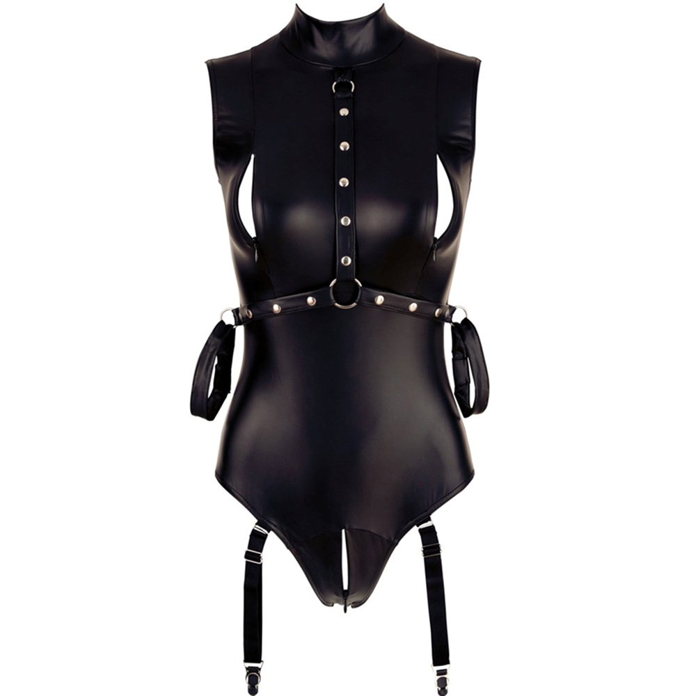 - Leatherette bondage bodysuit has a gorgeously erotic and wanton design