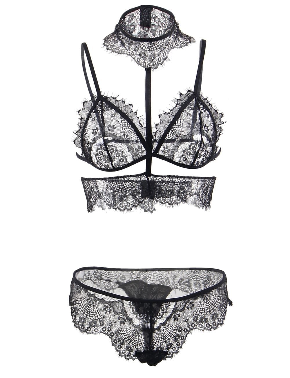 Seductive Strappy Choker Lace Bra Set,Choker Lace Bra Set,Bra
