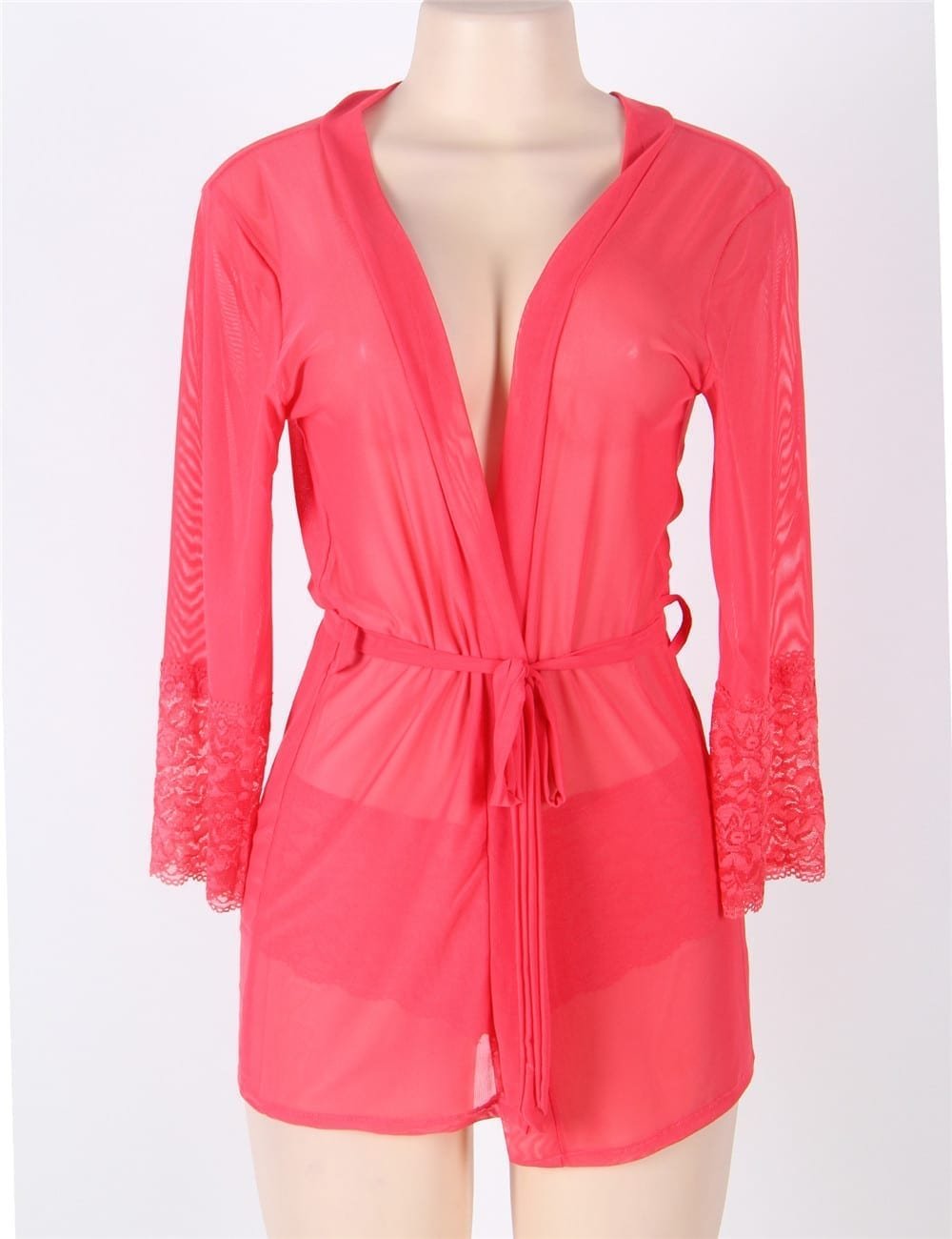 This is super soft and super comfortable to wear. The kimono fabric feels like heaven to the skin. And really gorgeous lace panties, too! I ordered the pink one. I’m getting myself the black next time.