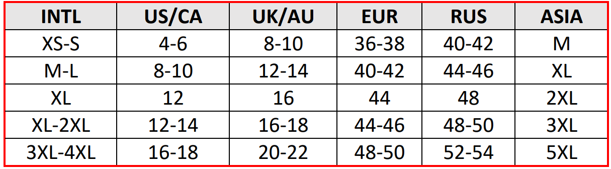 Please refer to our size chart to find your perfect fit. If unsure, we suggest you choose one size up: